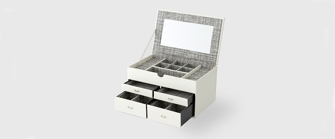 The packaging designs for Jewelry and watch should present the high-grade and luxury feel of these products. In the selection of the packaging materials, the hand-feel and the classic looks the materials give the package should be highly considered. When wood material is used as insert supporting frames, the moist content should be specially considered so as to avoid the deformation. The colorfastness of the surface and liner materials should be at least grade 4.0. Only the wear-resistant flannelette fabrics should be used as the liner materials. All materials, including insert plates and glues should be non-toxic and environment friendly.